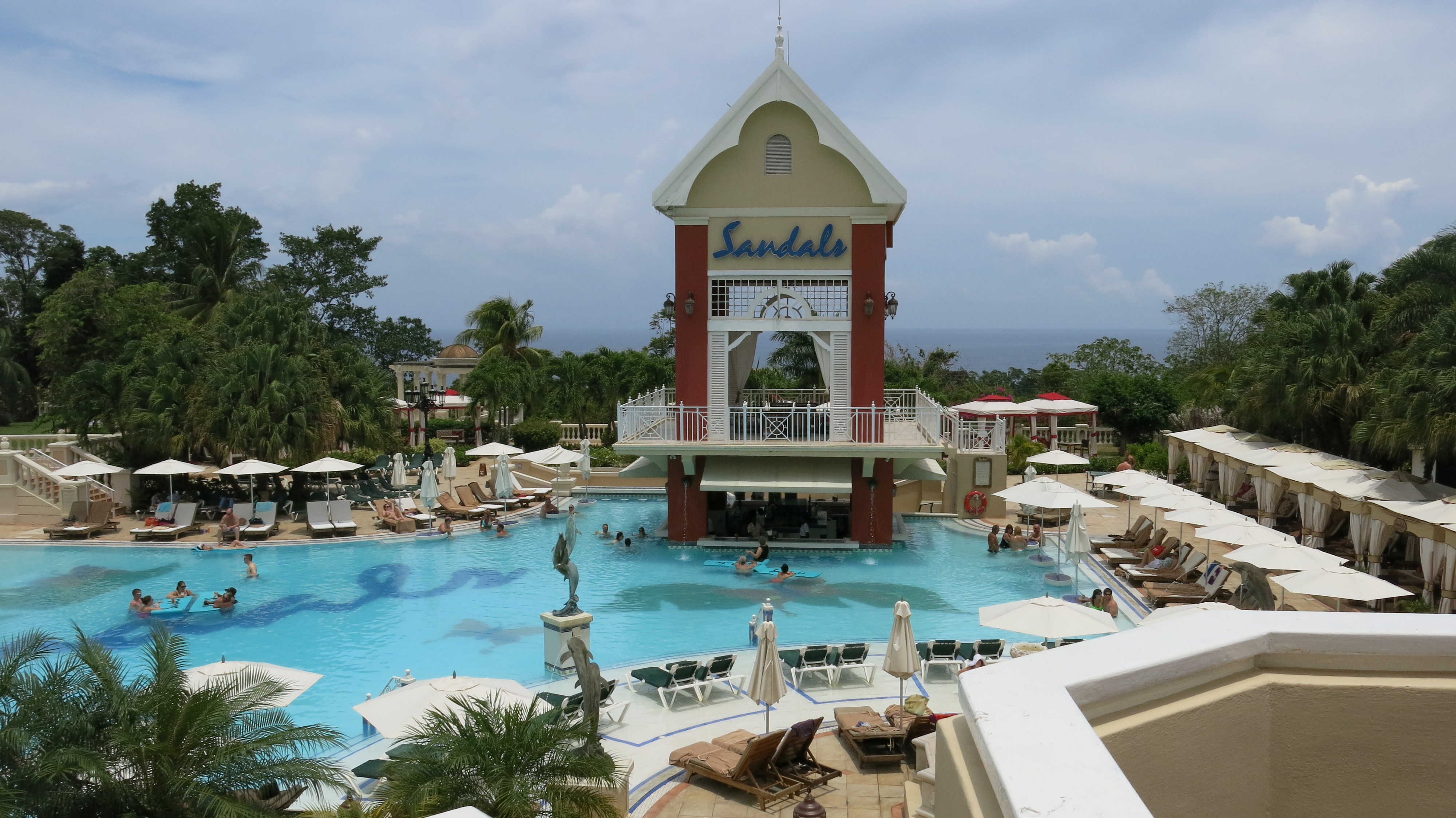 Sandals Grande Rivera is a mixture of loud and lively and quiet and beautiful. The resort is divided into two areas the seaside and the all butler hilltop. The hilltop butler suites have private swimming pools or shared swimming pools between two or four units. Shuttles or private golf carts driven by the butlers take you to the Great House which has shuttle buses to the beach. The grounds here are lavish with beautiful gardens everywhere. Leaving the hilltop to go to the seaside finds the Ochi Beach Club, water sports, gazebos over the water and more suites and villas and the restaurants. This is the lively and much louder area of the resort. There is also free golf (but you must take a caddy and pay them), free scuba diving if you are a certified diver.16 dining options, and Club Sandals their concierge suites, and entry level suites with beautiful garden views. There are two Red Lane Spas, 529 villas, luxury rooms and suites. Although this is a large resort you will have no problems finding a private area. for a romantic stroll. This is a great place for honeymooners or destination weddings.